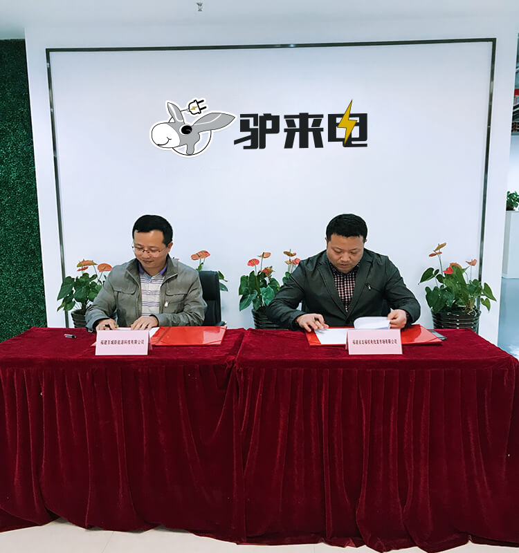 熱烈慶祝福建驢來電新能源科技有限公司與福建龍福機(jī)電市場(chǎng)就“驢來電”充電站成功簽約! 2017年11月22日,福建龍福機(jī)電副總何萬芬、運(yùn)營總監(jiān)黃巍偉蒞臨福建驢來電新能源科技有限公司商談“驢來電”充電站合作事宜并成功舉行了簽約儀式。